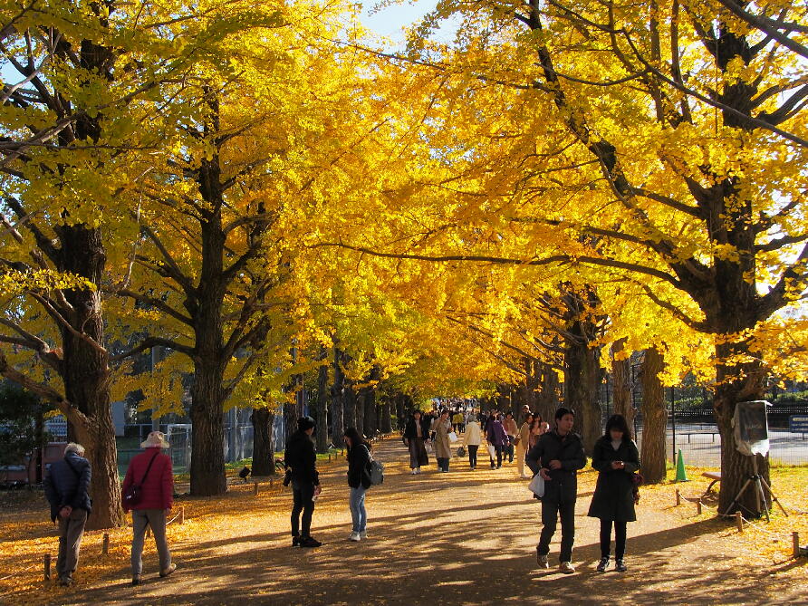 季節は確実に冬になって、今日は冷たい雨になりました。昨日はまだ温かい秋日和でしたので、前から行こうと思っていた昭和記念公園の紅(黄)葉を観に行きました。夜はライトアップもあるようです。