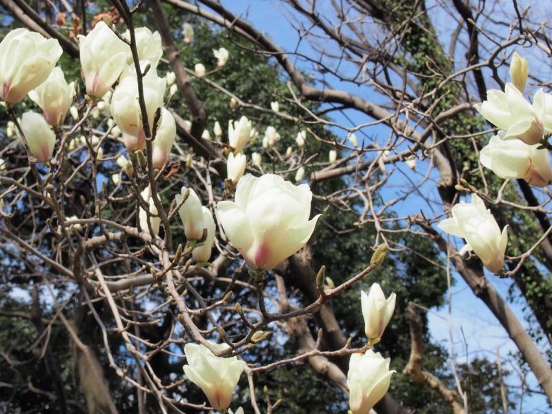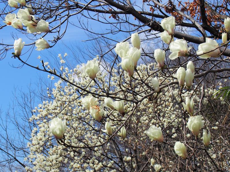 多摩地域の桜はまだ蕾でしたが、白木蓮や雪柳の花がきれいに咲いていました。